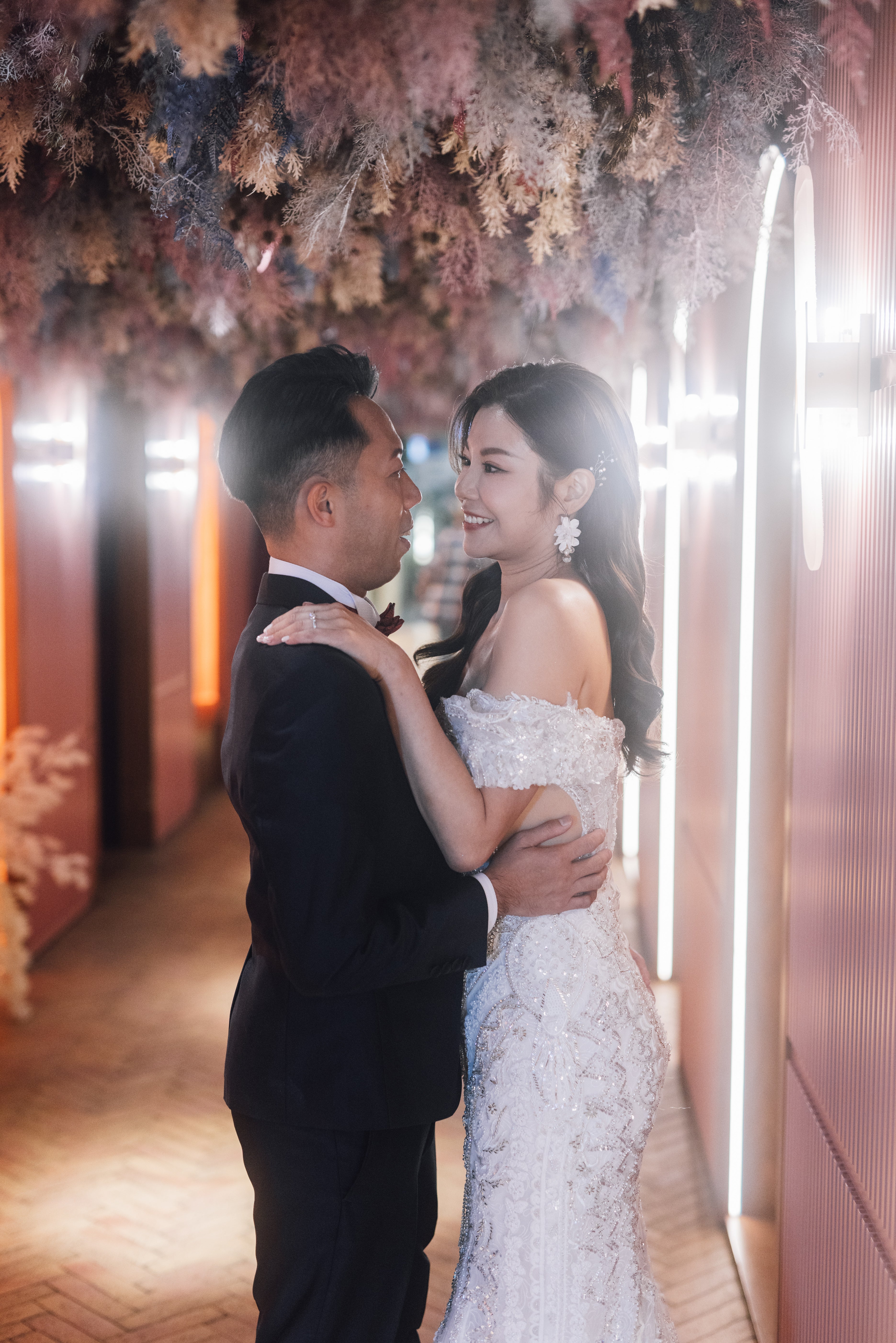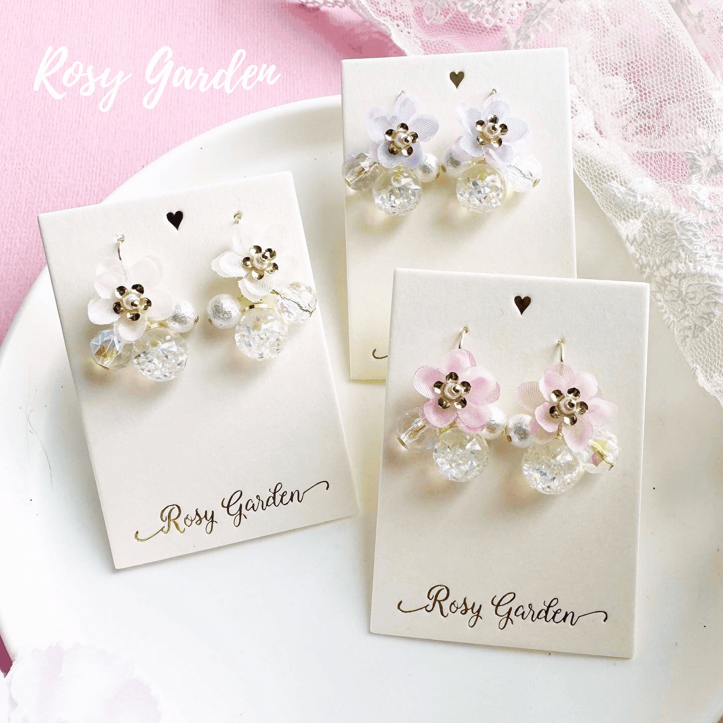 雪紡蘋果花水晶球耳環 可換耳夾【花環款】 | 香港手作