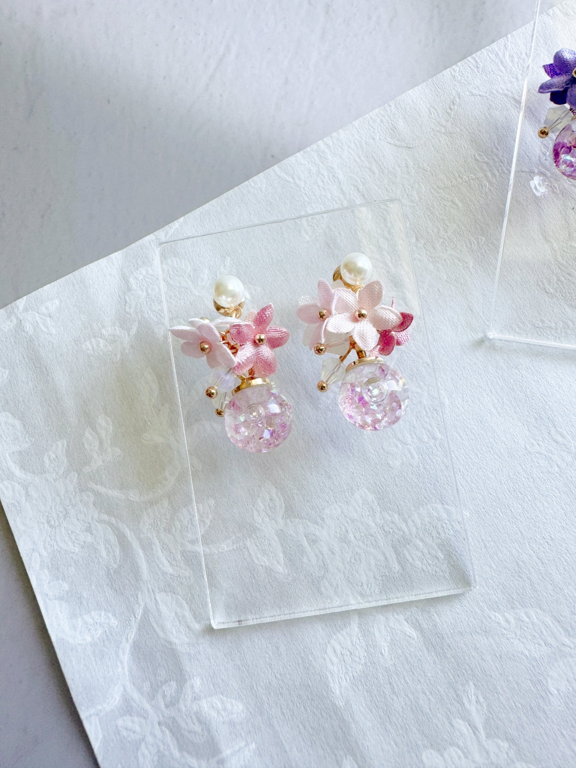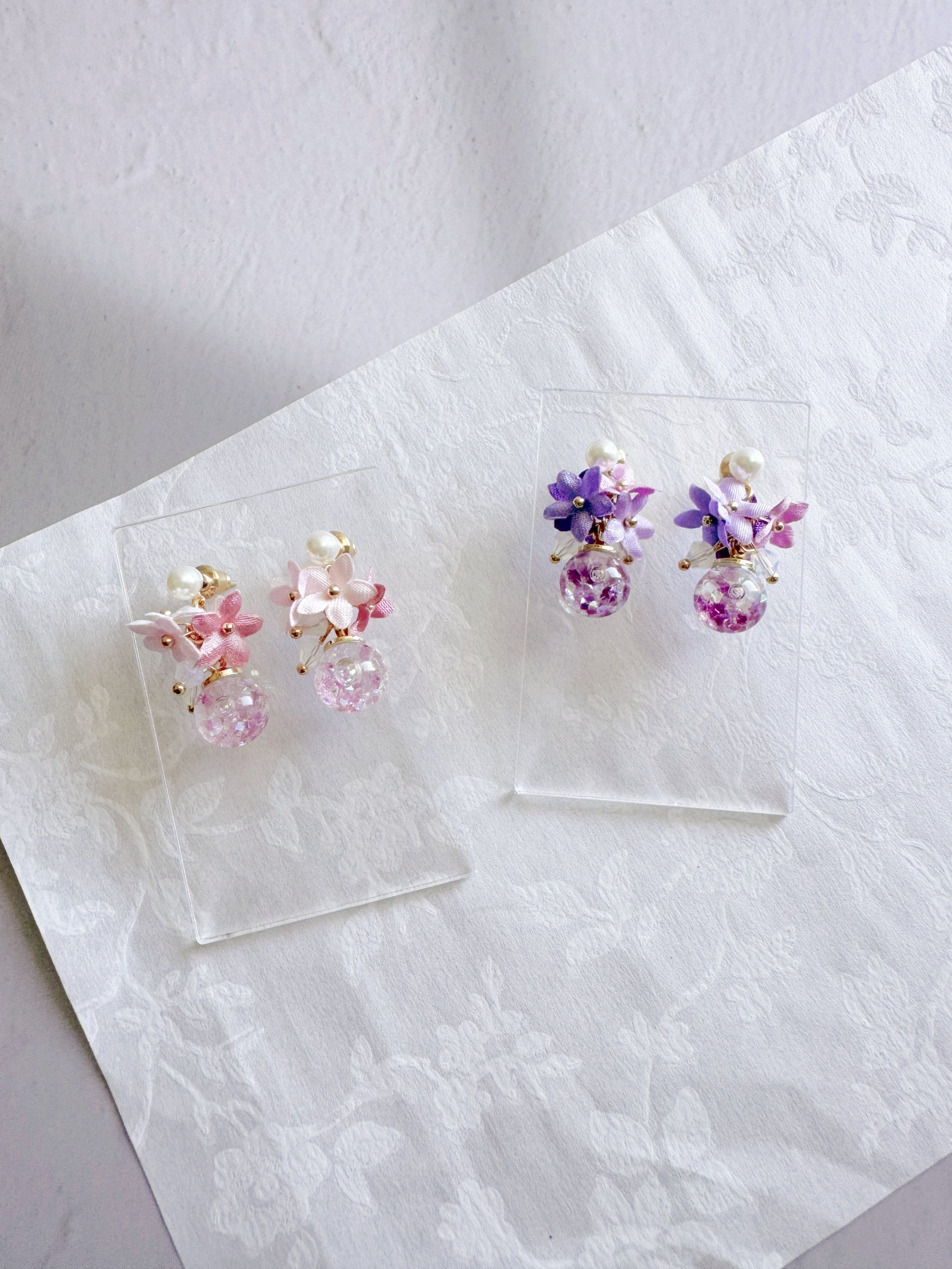 擷取花朵初綻的瞬間,將自然的優雅永恆凝結。「五瓣尖角花花水晶球耳環」以精緻的五瓣花造型輕托清澈水晶球,彷彿朝露停留於花瓣尖端,在光影流轉間,折射出純淨剔透的光芒。