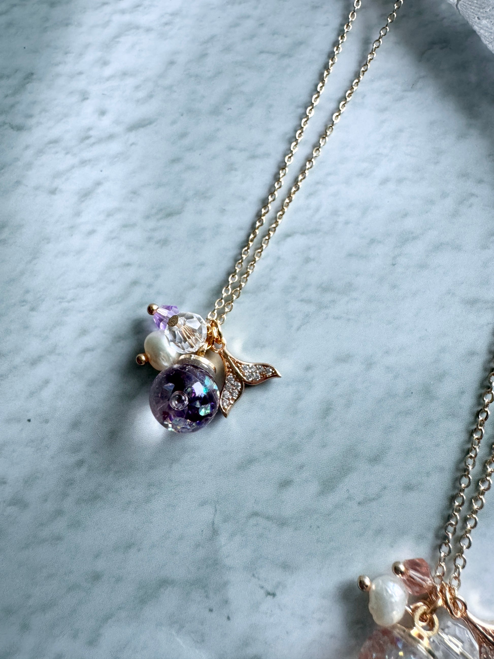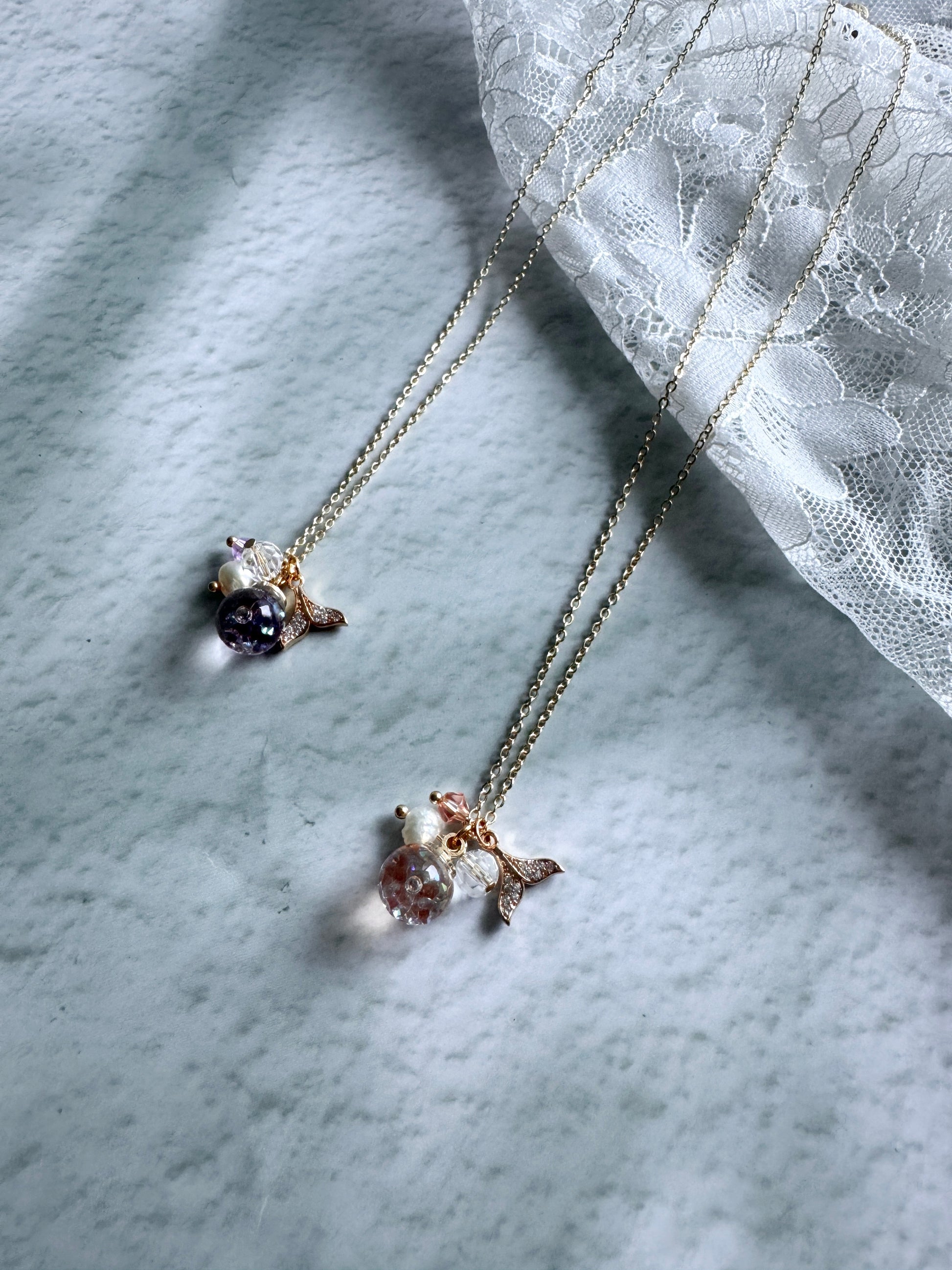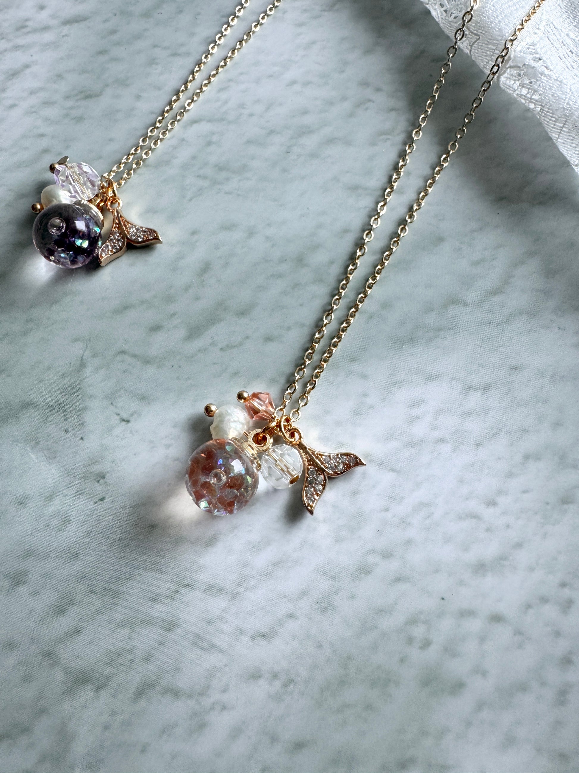 美人魚尾巴流沙水晶球頸鍊