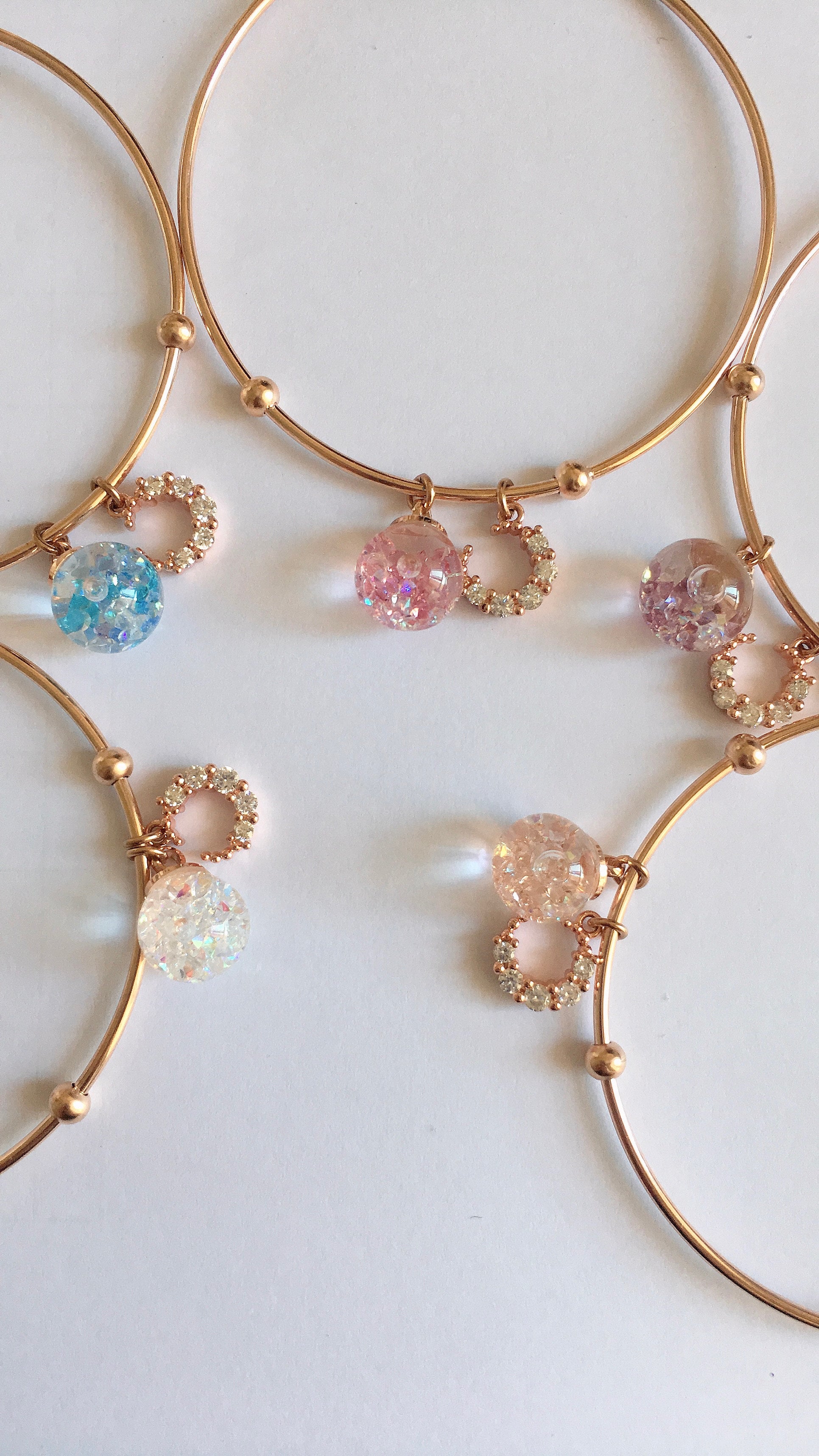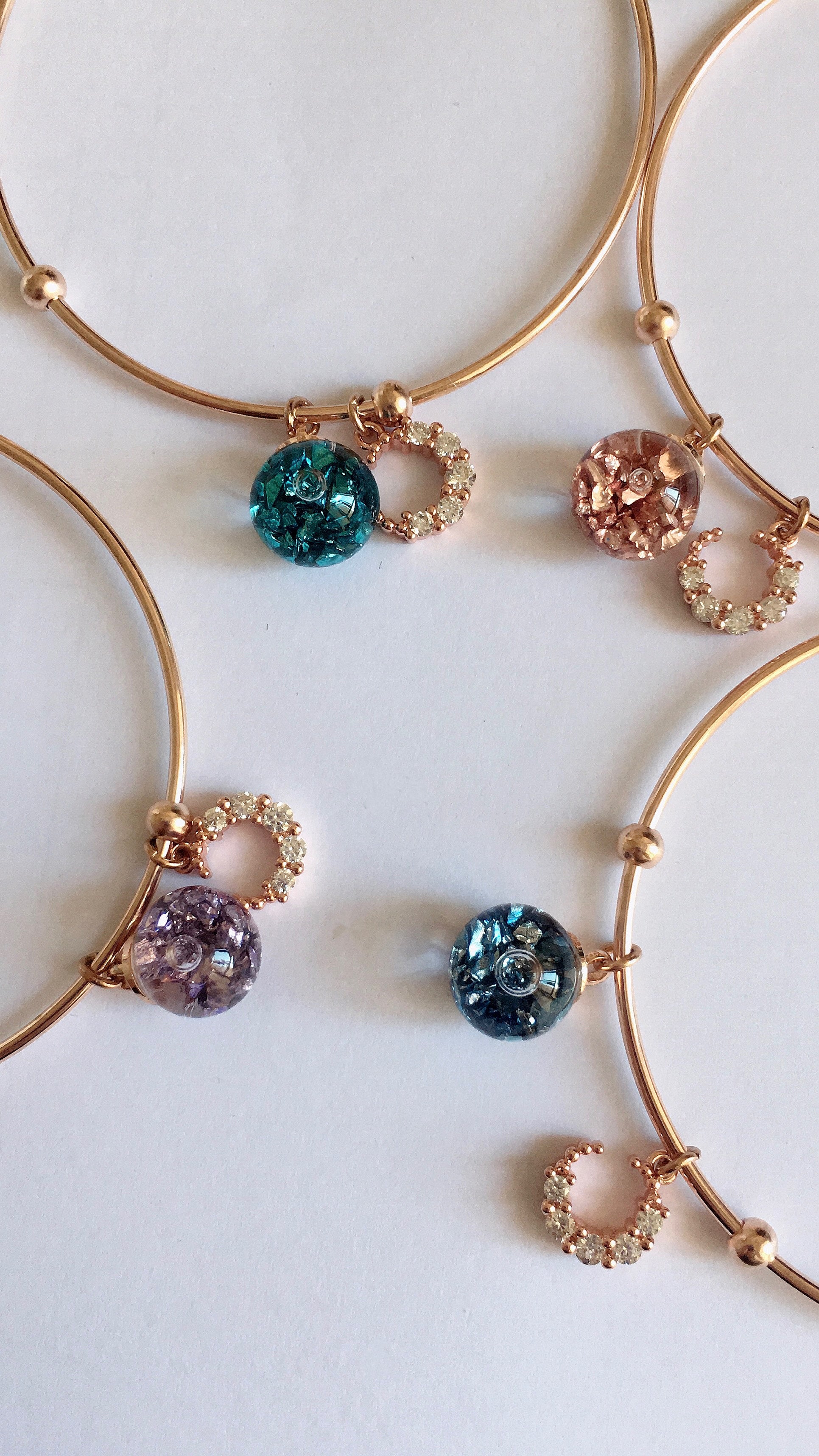 鋯石月亮流沙水晶球玫瑰金色手鐲