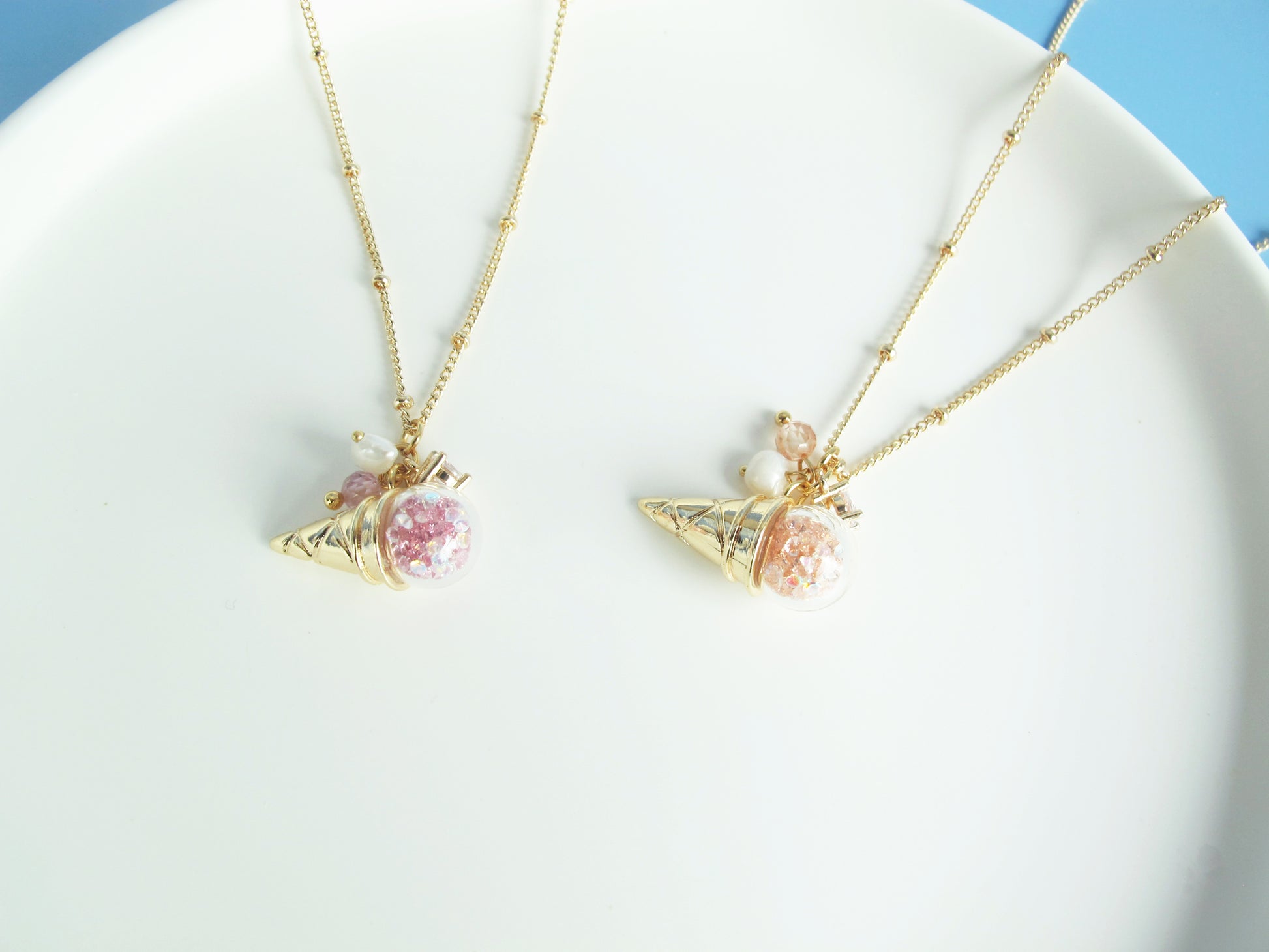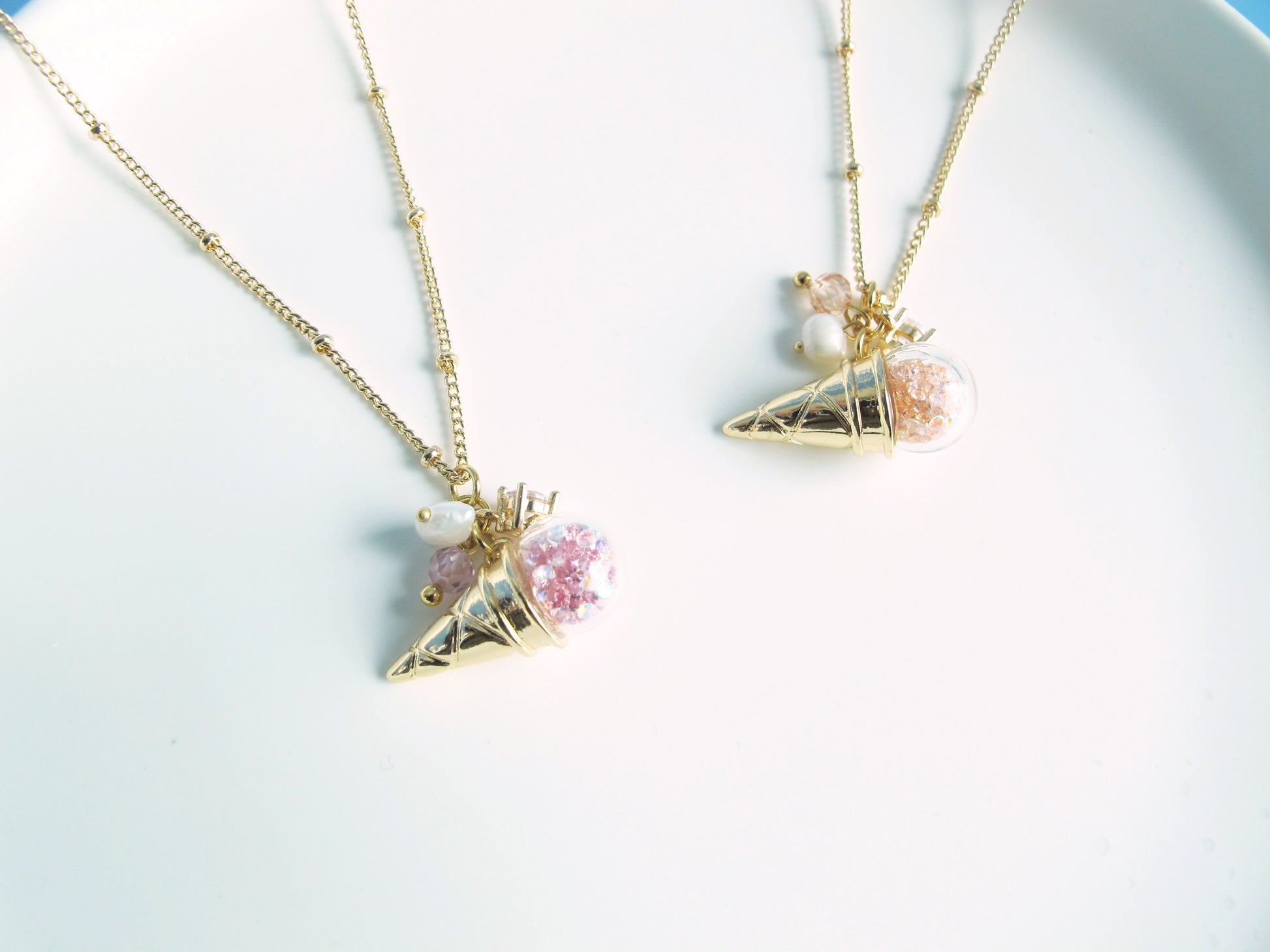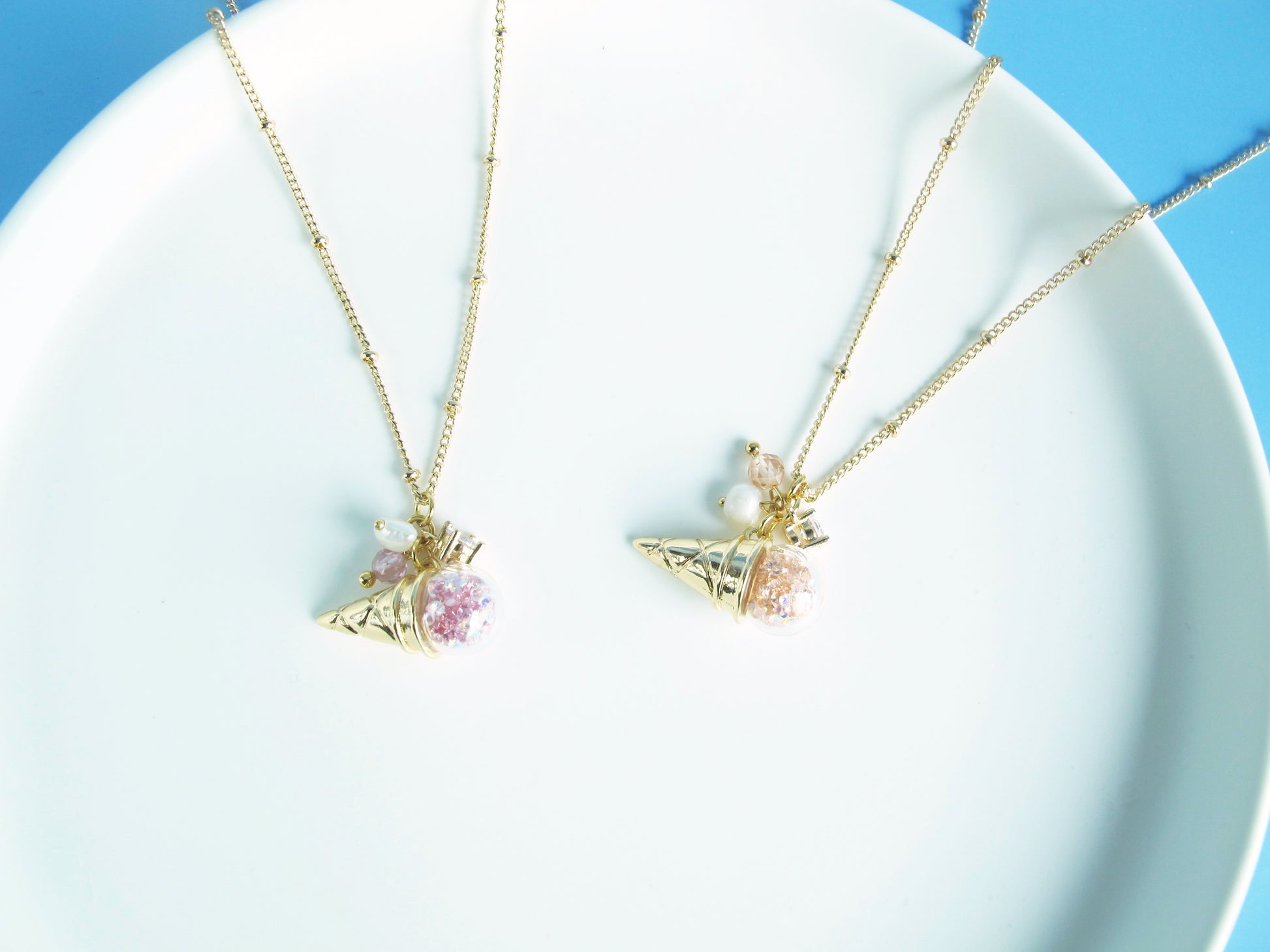 把夏日最甜美的回憶凝結成頸間的閃耀瞬間!彷彿剛擠好的軟綿雪糕,頂著晶瑩剔透的水晶球,在陽光下閃爍著誘人光澤,讓人忍不住想咬一口的可愛造型,為炎炎夏日注入清涼甜美的氣息。